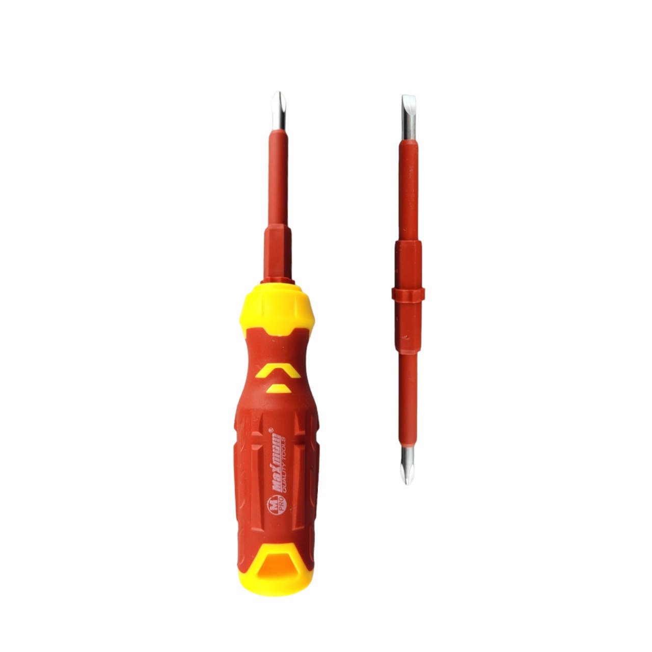 Комбинированная диэлектрическая отвертка от «Maximum Quality Tools» имеет рабочий шлиц PH1xSL5x50 мм. Диэлектрическая отвертка покрыта изолирующим резиновым покрытием и может применяться для выполнения электротехнических работ под напряжением до 1000 В. Износостойкость отвертки обеспечивается прочным стержнем из хром-ванадиевой стали.